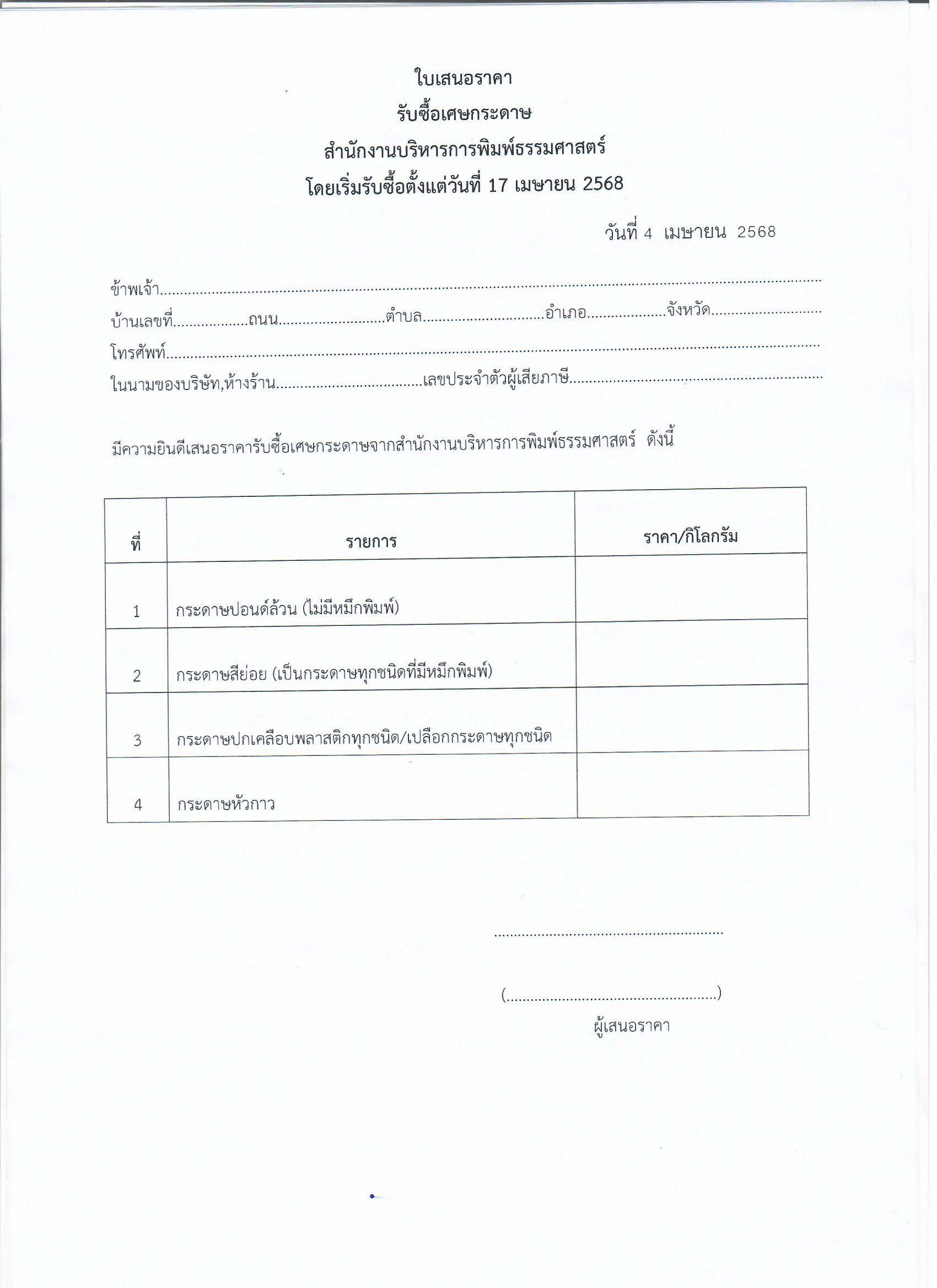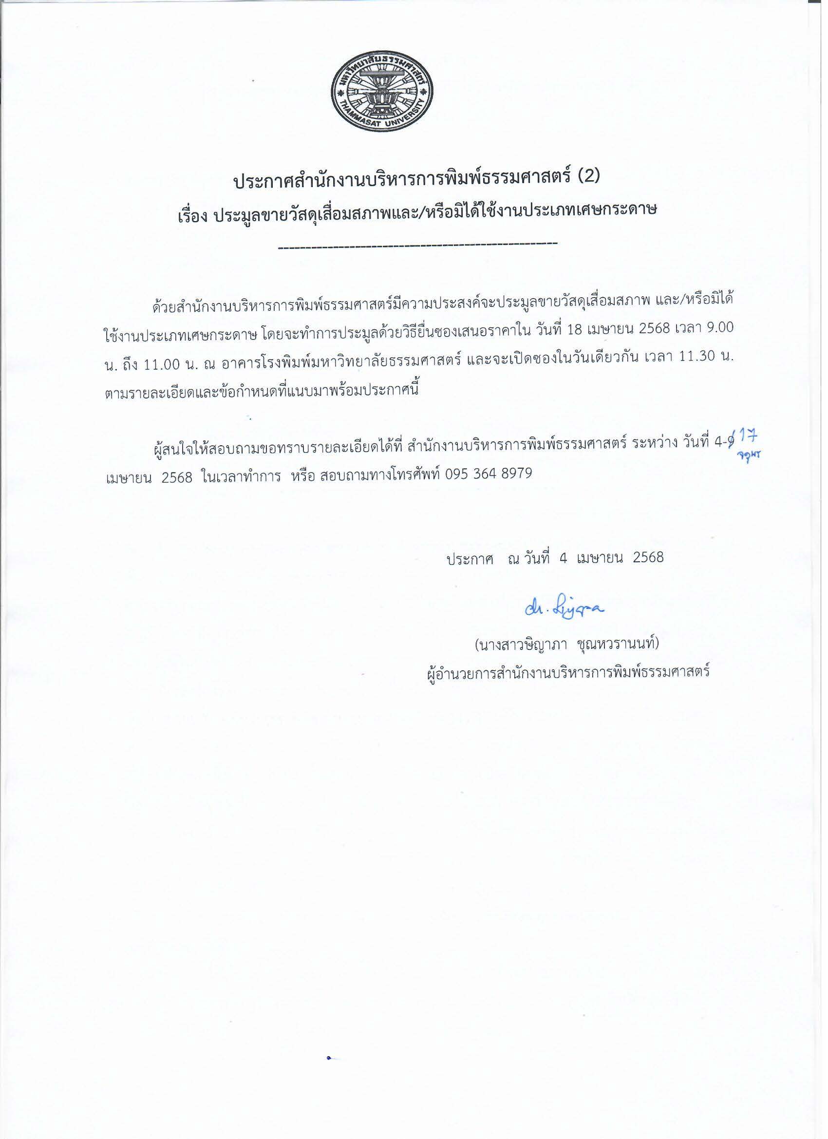 ประกาศโรงพิมพ์มหาวิทยาลัยธรรมศาสตร์