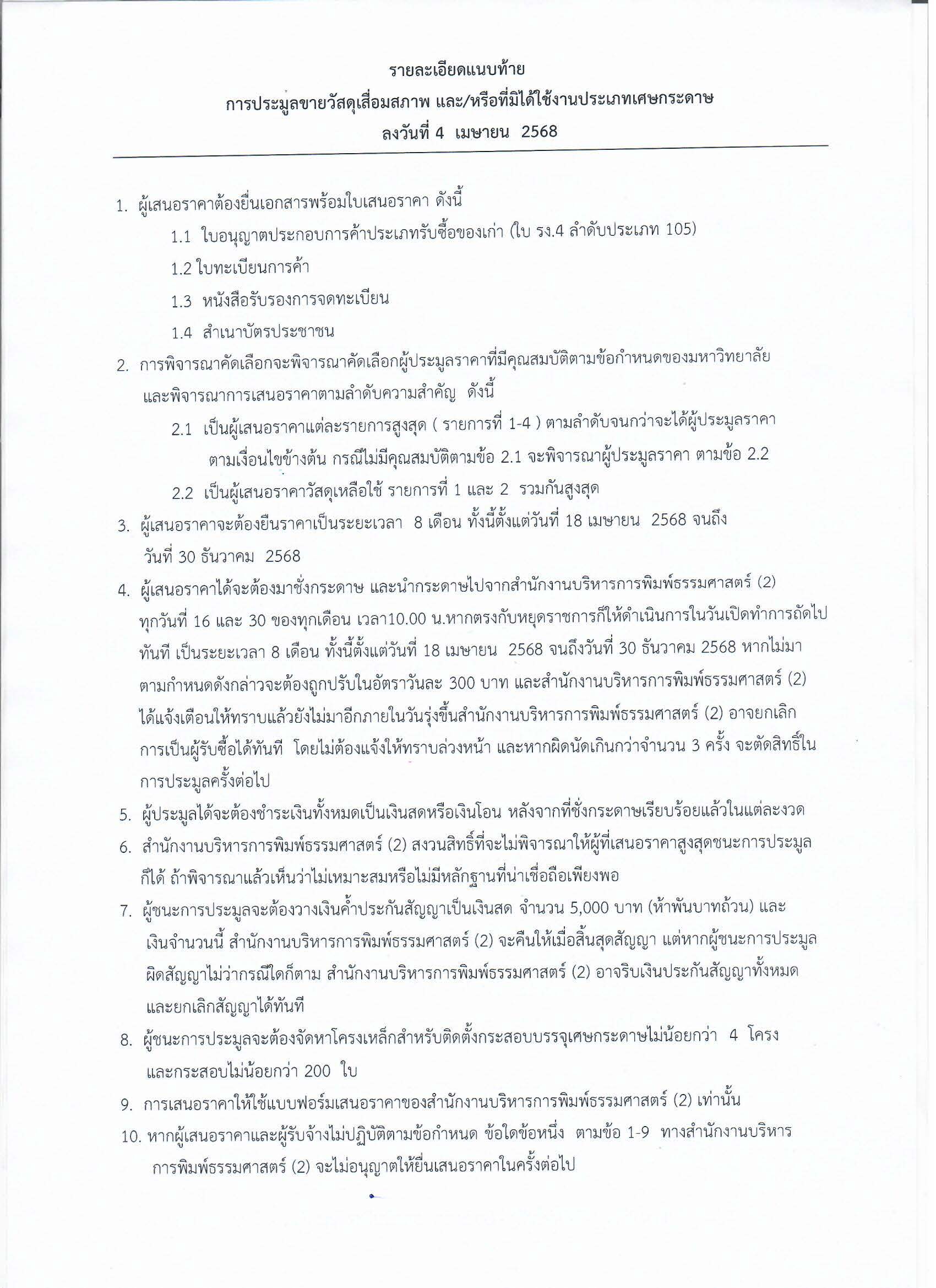 ประกาศ ประมูลขายวัสดุเสื่อมสภาพและ/หรือมิได้ใช้งานประเภทกระดาษ